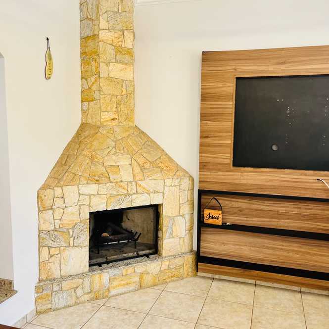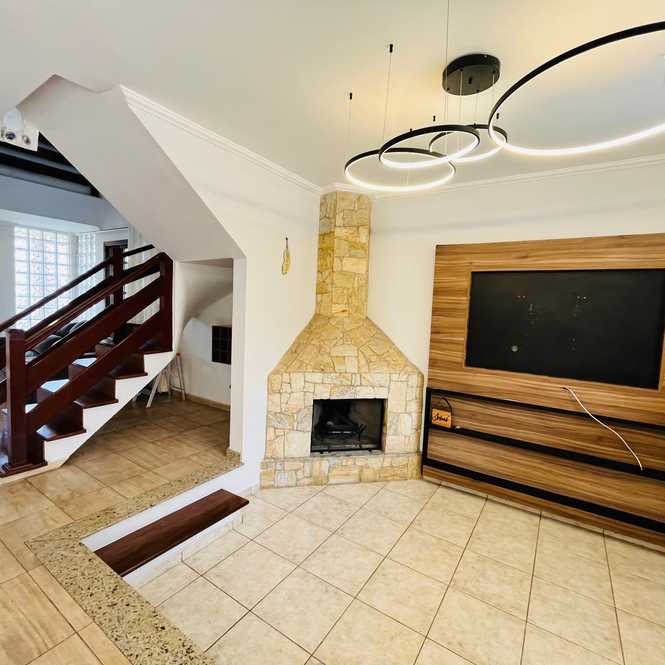 O imóvel conta com 4 dormitórios, sendo 1 suíte com closet e varanda, além de salas amplas de estar e jantar com lareira, proporcionando conforto e sofisticação para toda a família. A cozinha integrada com móveis planejados traz praticidade para o dia a dia.