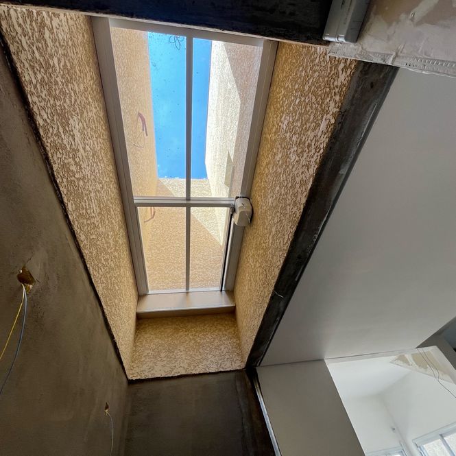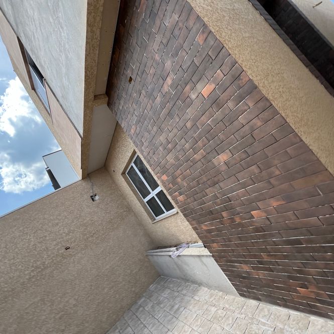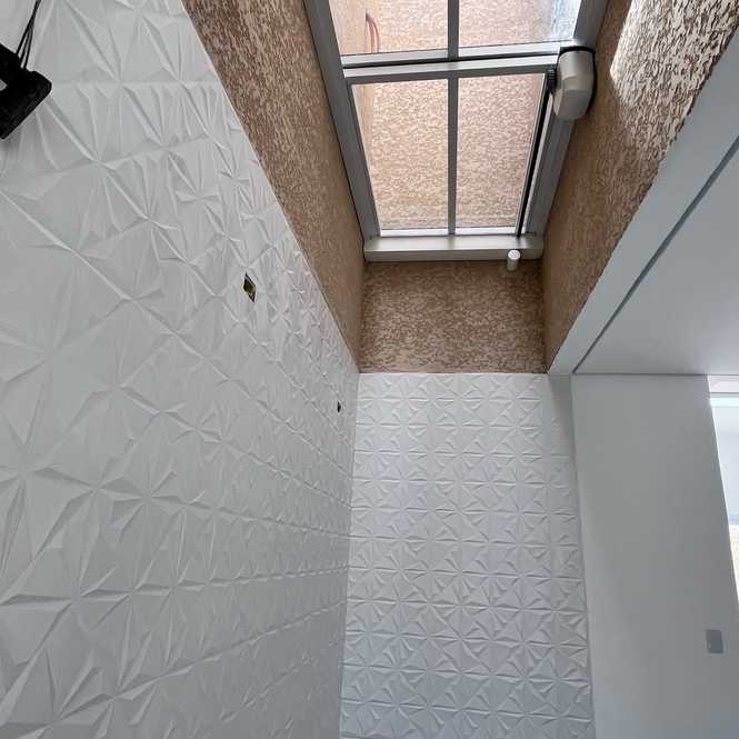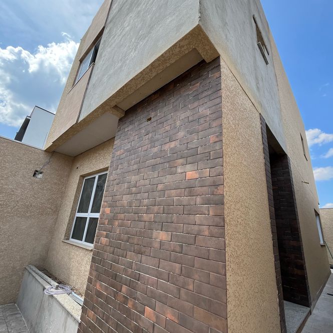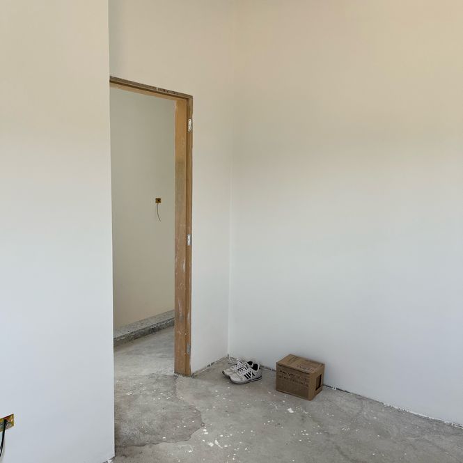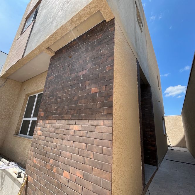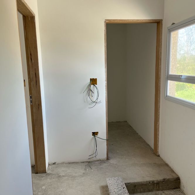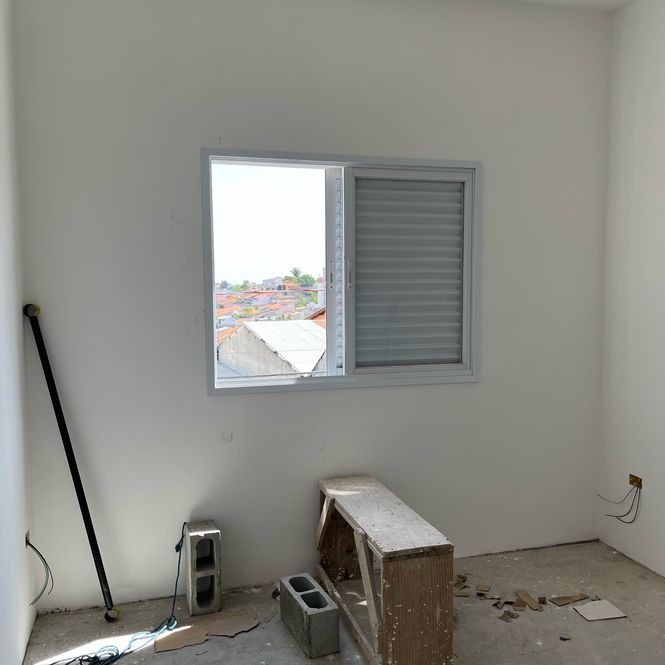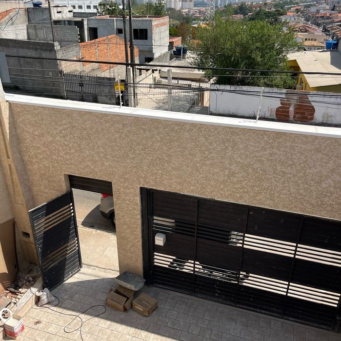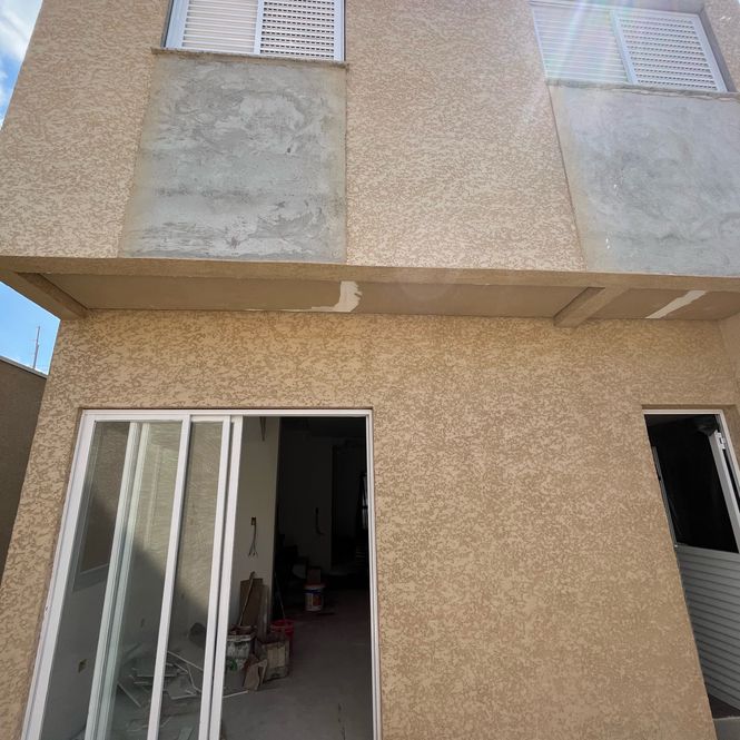 Pintura interna branca e externa com sistema monocapa, que impermeabiliza e valoriza a textura das paredes.