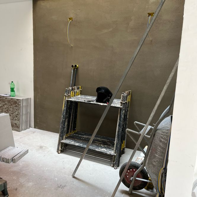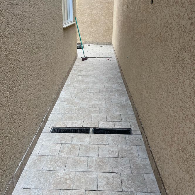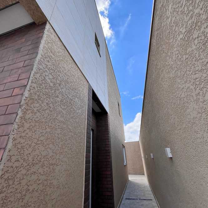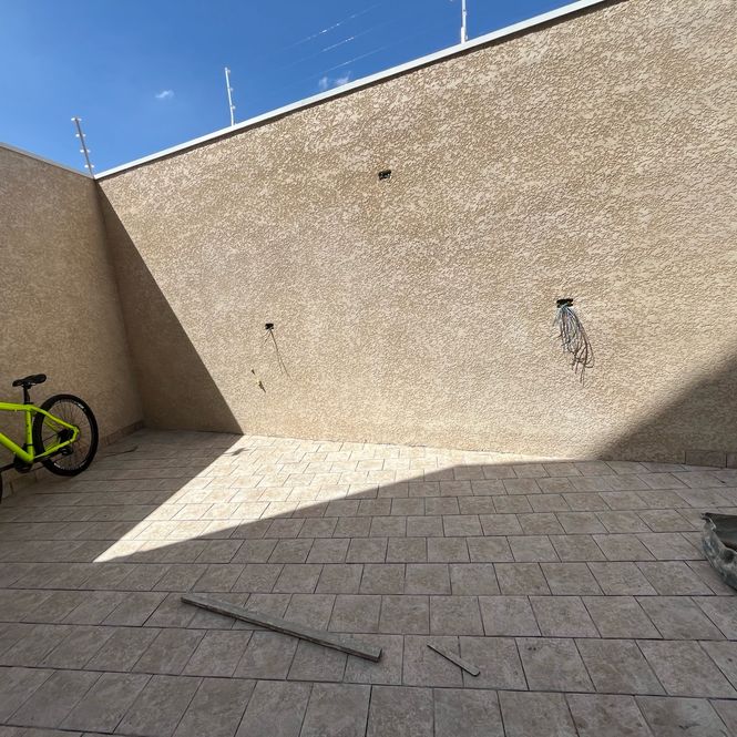 Muros pintados e luminárias já instaladas, prontas para valorizar a fachada.