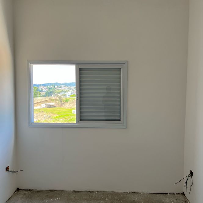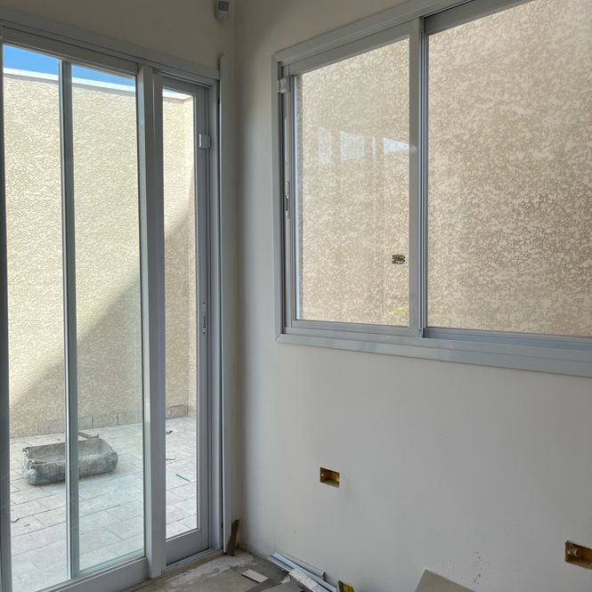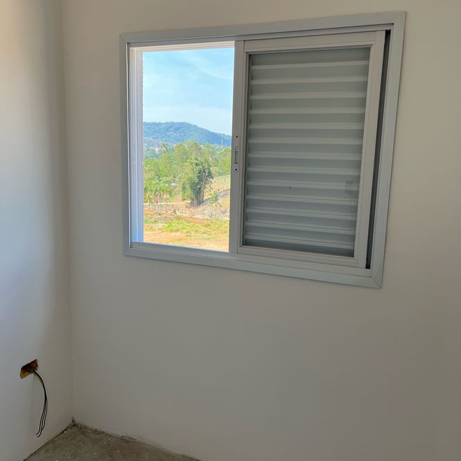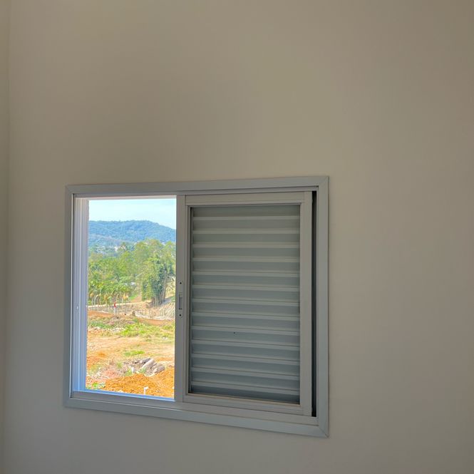 Esquadrias em alumínio com acabamento epóxi branco.